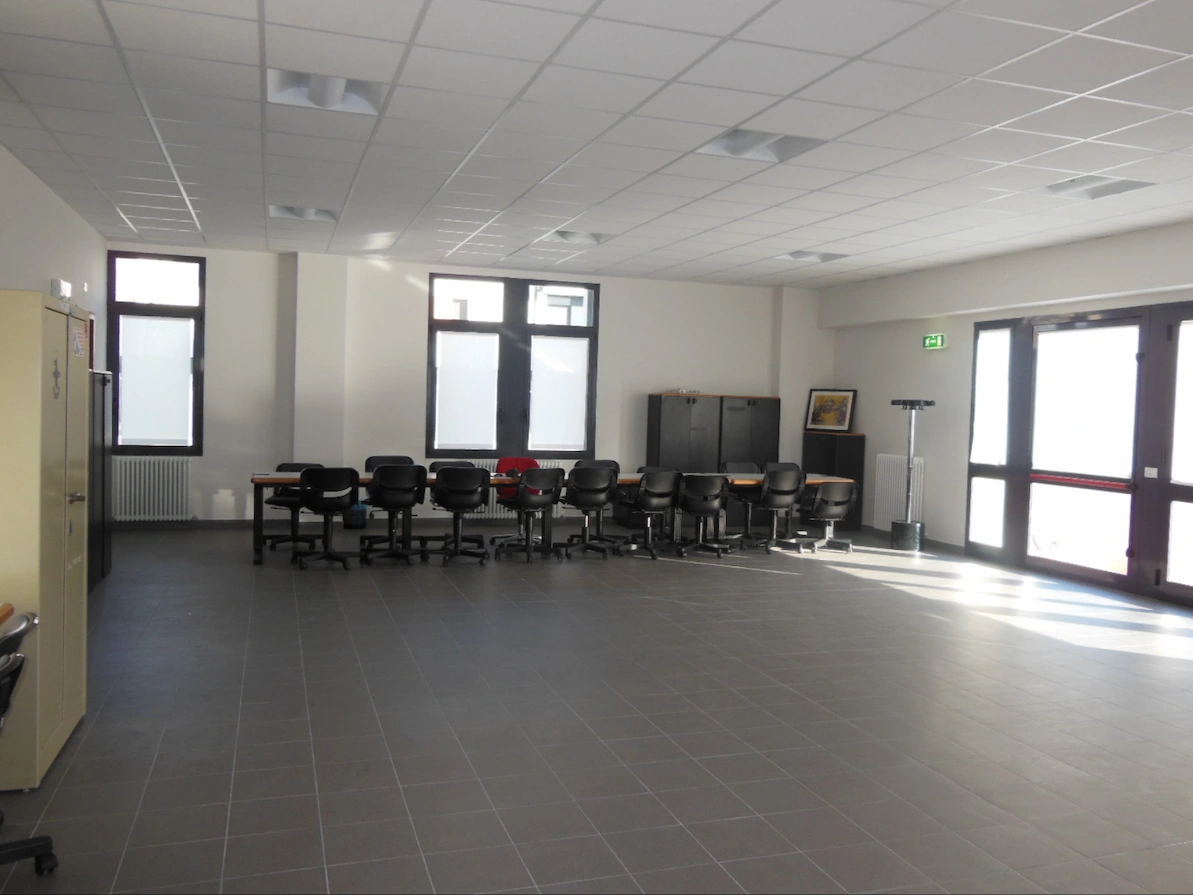 - Sala a piano terra (di circa 100 mq) accessibile direttamente dal comodo parcheggio, con tavolo riunioni da circa 30 posti, con possibilità di utilizzo di altri due tavoli e sedie in plastica.